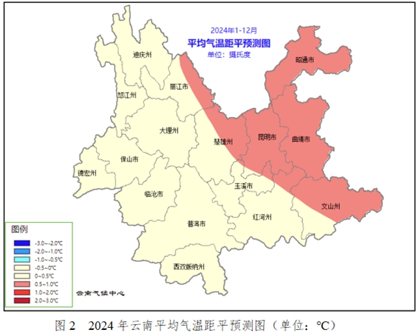 全省大部地區(qū)降水接近常年同期到偏少,氣溫接近常年同期到偏高。據(jù)氣象部門預(yù)測(cè),降水:迪慶州西北部、怒江州北部、昭通市東北部、曲靖市東北部邊緣地區(qū)偏多10%—20%,其余大部地區(qū)接近常年同期到偏少,其中西雙版納州、普洱市中西部、臨滄市中南部、保山市南部、德宏州中南部偏少10%—20%(見(jiàn)圖1)。氣溫:全省大部地區(qū)接近常年同期到偏高,其中文山州中北部、曲靖市、昭通市、昆明市、楚雄州東北部、麗江市東部偏高0.5~1.0℃(見(jiàn)圖2)。重點(diǎn)關(guān)注:冬春季階段性強(qiáng)冷空氣引發(fā)的低溫冰凍雨雪天氣;2月下旬至4月上旬滇東北、滇西北及高海拔地區(qū)倒春寒天氣;春季冰雹大風(fēng)等強(qiáng)對(duì)流天氣;春末夏初氣象干旱;主汛期強(qiáng)降水引發(fā)的洪澇和地質(zhì)災(zāi)害,區(qū)域性氣象干旱。