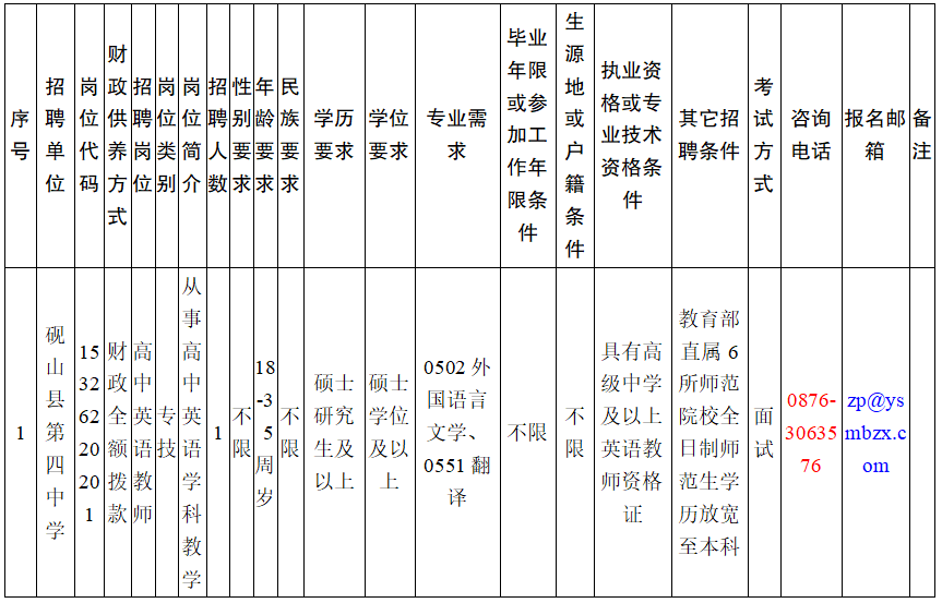 本次緊缺崗位招聘采取網絡報名或現場報名的方式進行。網絡報名郵箱為:zp@ysmbzx.com,咨詢電話:0876-3063576,F場報名可到硯山縣第四中學進行報名。