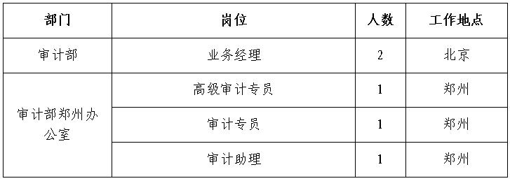 根據(jù)工作需要,經(jīng)研究決定,現(xiàn)面向社會公開招聘方式補充集團總部、有關(guān)單位審計人員65人,F(xiàn)將有關(guān)事項公告如下: