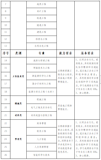 隧道工程專業(yè)承包壹級、建筑裝飾裝修工程專業(yè)承包貳級、鋼結(jié)構(gòu)工程專業(yè)承包貳級、預(yù)拌商品混凝土不分等級、施工勞務(wù)不分等級