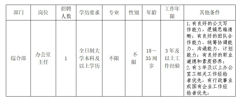 為加強人才隊伍建設,優(yōu)化專技人員結構,結合公司工作實際,計劃公開招聘辦公室主任一職,為確保公開招聘工作順利進行,現(xiàn)將有關事項公告如下: