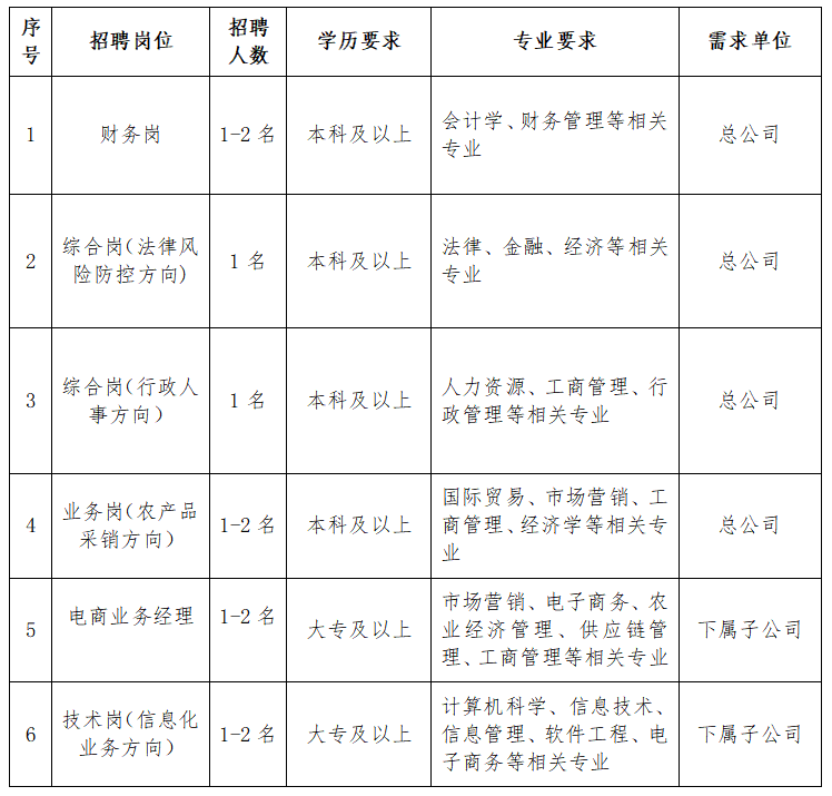 現結合公司發(fā)展需求,計劃面向社會公開招聘財務、法務、行政、業(yè)務采銷、電商運營、信息化技術崗位人才。