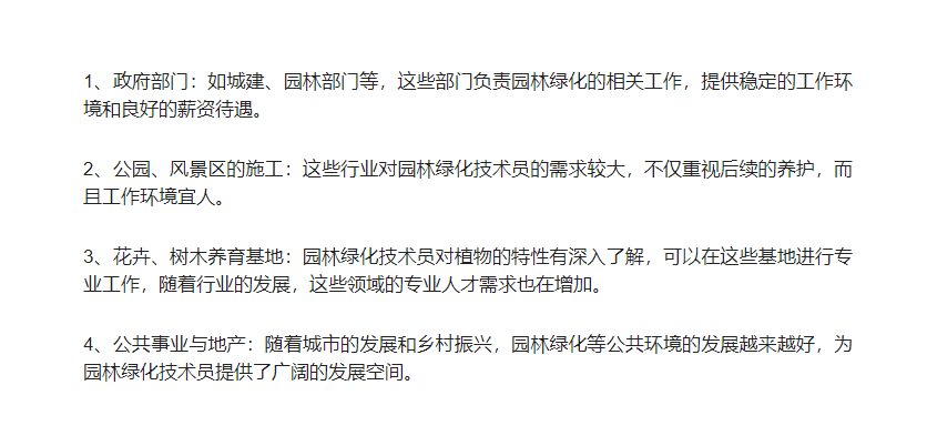 4、想提升自己的知識(shí)技能,增加崗位待遇,擴(kuò)大職業(yè)發(fā)展方向的人:通過(guò)考取園林綠化工證書(shū),可以提升個(gè)人專業(yè)技能,增加崗位待遇,并拓寬職業(yè)發(fā)展方向。