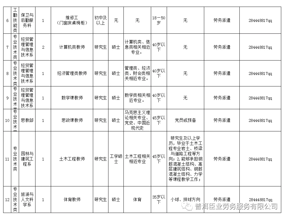 (五)報(bào)考專職教師崗位要求全日制研究生學(xué)歷及碩士以上學(xué)位(具體要求詳見(jiàn)附表);報(bào)考管理崗位要求全日制本科學(xué)歷及學(xué)士以上學(xué)位(部分崗位限專業(yè),具體要求詳見(jiàn)附表)。報(bào)專業(yè)技術(shù)崗位思教部者,黨員或預(yù)備黨員優(yōu)先。
