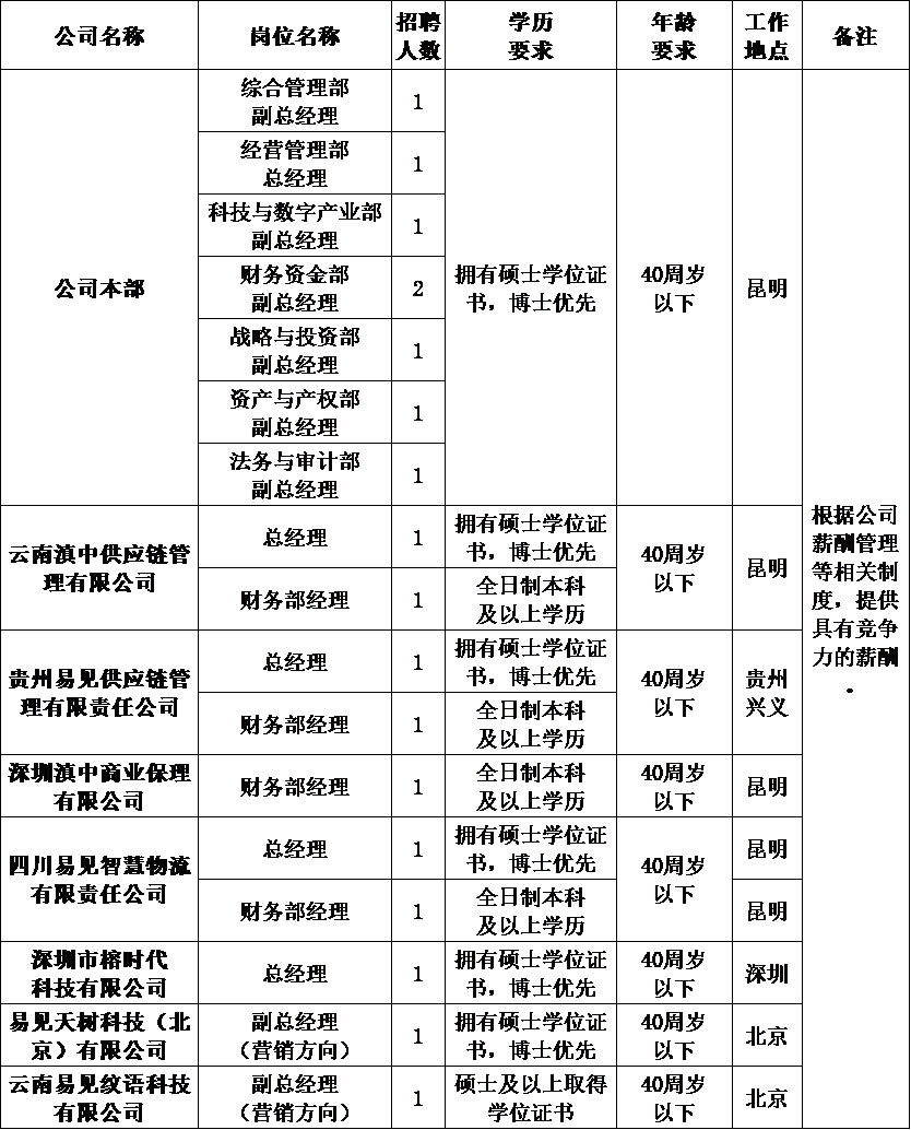 附件1:《易見(jiàn)供應(yīng)鏈管理股份有限公司2021年公開(kāi)招聘崗位情況表》。